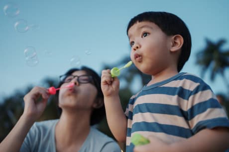 - Encourage sensory play. For example, blow bubbles together, play with sand or water, or explore light-up and musical toys that capture your child’s attention.